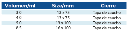 La pared interna del tubo está recubierta con litio, sodio, amonio o heparina secados por pulverización